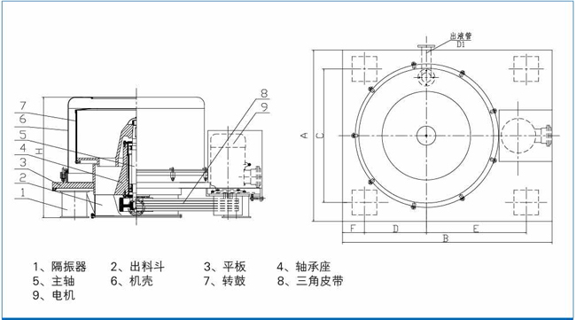 普通傳動三角皮帶及電機(jī)防護(hù)安全罩,現(xiàn)場操作箱,平板式配阻尼隔振器。